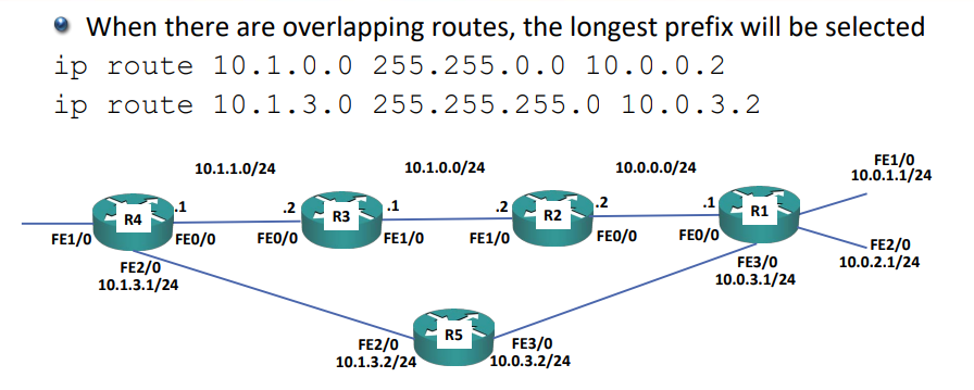 ip route 10.1.0.0 255.255.252.0 10.0.0.2 로 사용하여 요약 경로를 설정할수도있다.