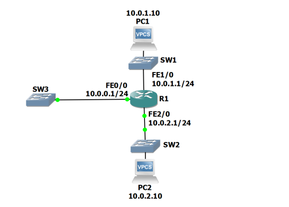 | F0/0 | 10.0.0.2/24 | F0/0 | 10.0.0.1/24 |